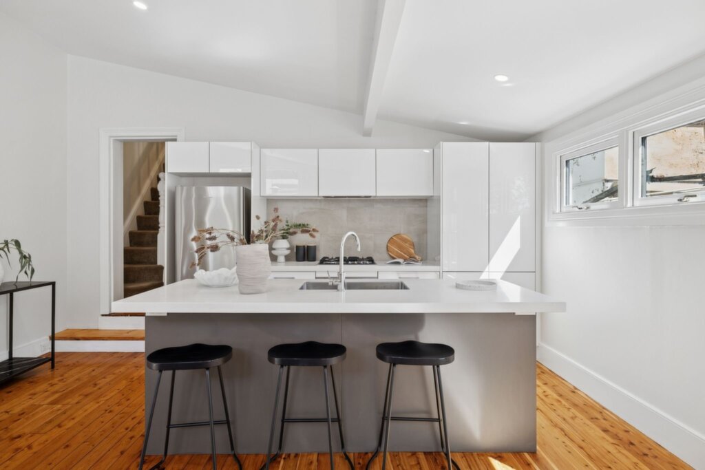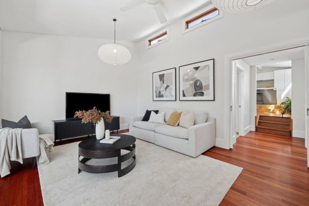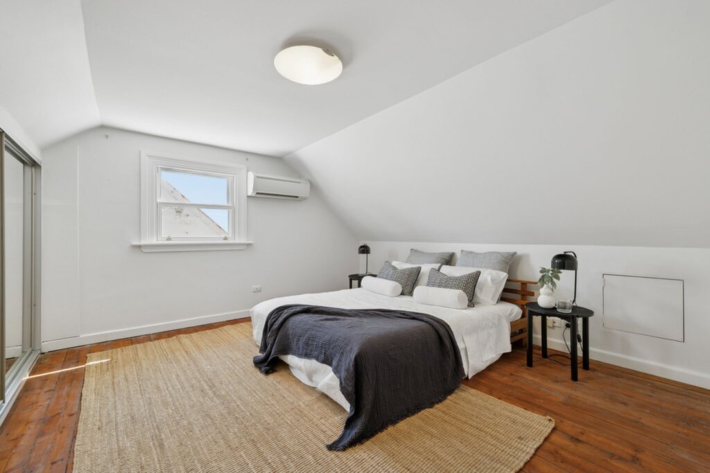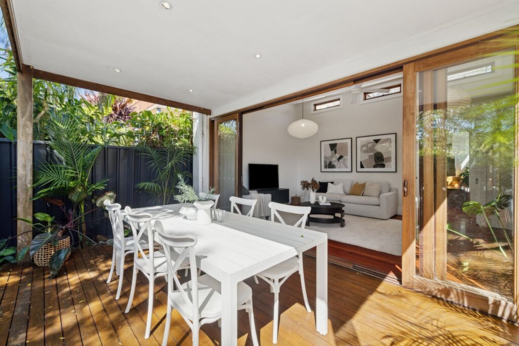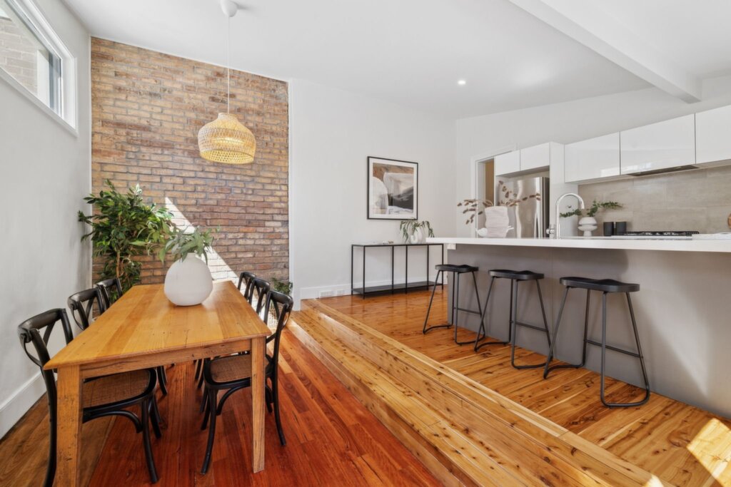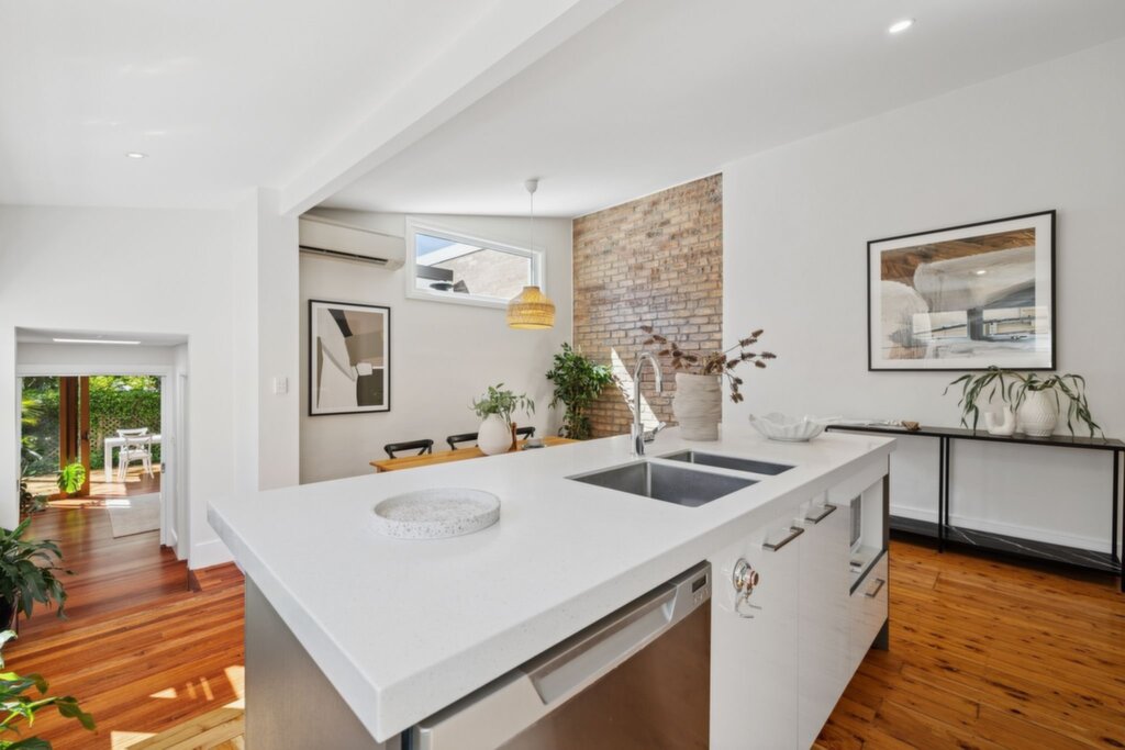 Features timber floorboards and Roman blinds, exposed brick feature wall Living room with raked ceiling and cedar doors that open to the deck Northerly outdoor setting beside a Jasmine bush, two garden storage sheds Well-appointed kitchen with gas cooktop, enjoy casual meals at the breakfast bar Stylish bathroom with contemporary finishes and a chic bathtub Air conditioning in the kitchen/dining and upstairs, gas instant hot water system Only 700m from Stanmore Station, surrounded by shops, cafes and bakeries Set in Annandale Public School catchment, 1km from Fort St Selective High