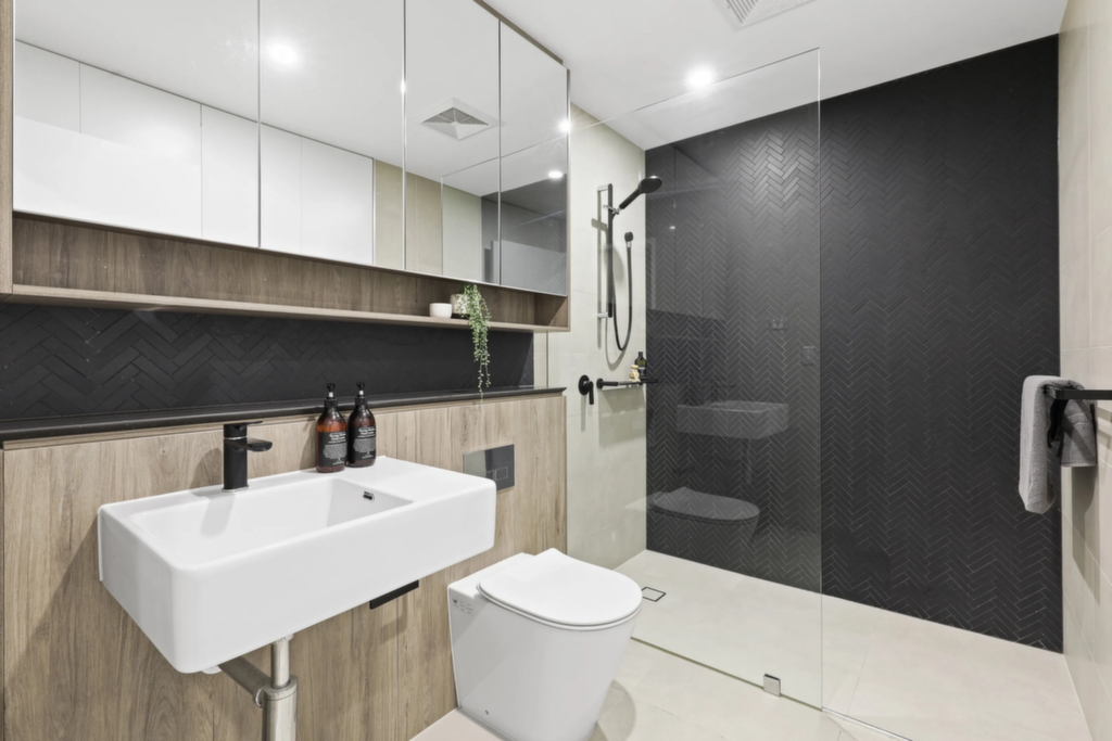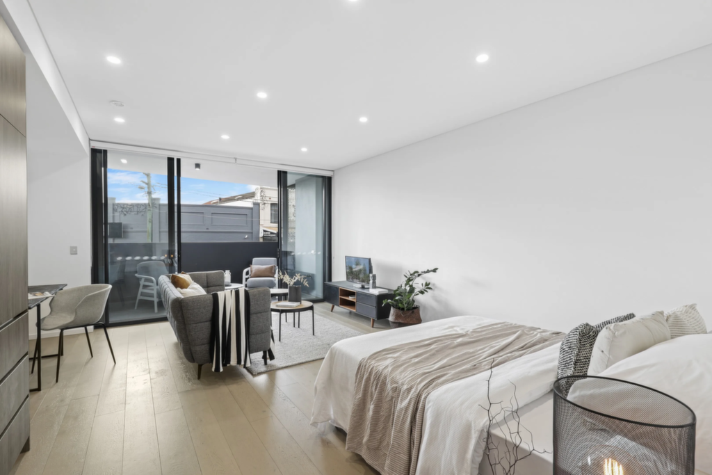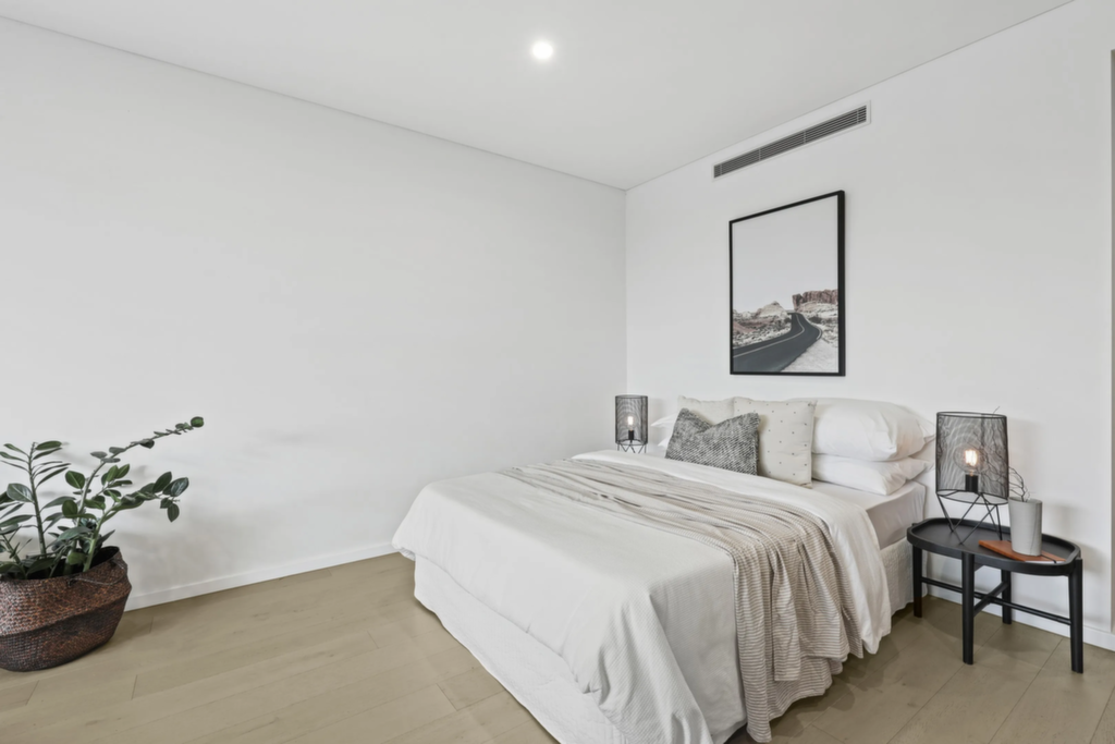 Bright and airy interiors with full air conditioning Sleek kitchen with stone benchtops and stainless steel appliances Gas cooktop, dual sink, and soft-closing cabinetry Built-in robe storage plus dedicated study space Pristine modern bathroom with concealed internal laundry Video intercom, lime-washed oak-style flooring throughout Lift access to front door and 4m² secure storage cage Steps to Cooks River parklands and Wolf & Stone Café Easy access to trains, light rail, shops, and village amenities