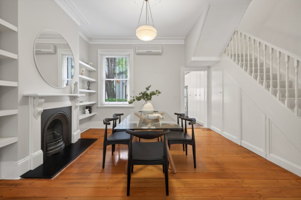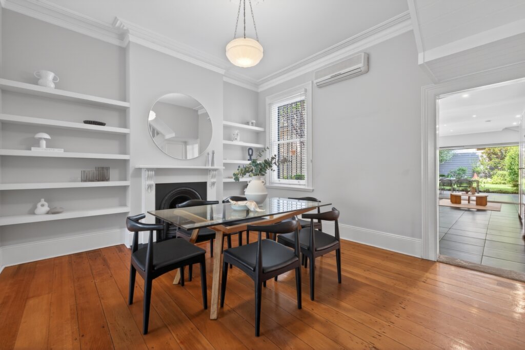 Set only footsteps from corner cafés in a leafy enclave, this freestanding terrace reflects degrees of excellence with its premium finishes and seamless architectural extension. Downstairs offers dual living areas – with period-style fireplaces at one end (including an operational gas-burning front fireplace) and heated flooring at the other – plus an immaculate kitchen featuring a 90 cm oven. Also expect to be impressed by the ornate period details, the size of the three bedrooms placed upstairs, and the outdoor retreats, including a calm front balcony, plus a rear alfresco entertaining area beside the child-friendly garden. This is one of the suburb’s most sought-after streets, located a stroll from Petersham Park and the aquatic centre, Petersham Station and village eateries along New Canterbury Road.
